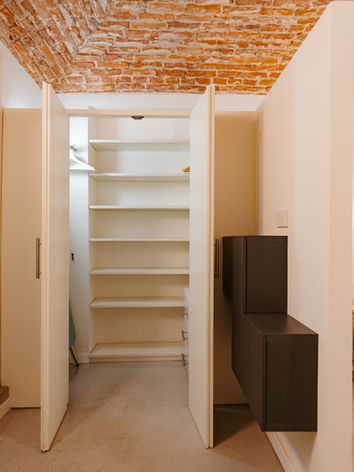 L'appartamento è dotato di un'ampia cabina armadio in suite, di un armadio a 4 ante nella camera twin e due scarpiere